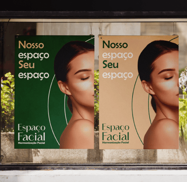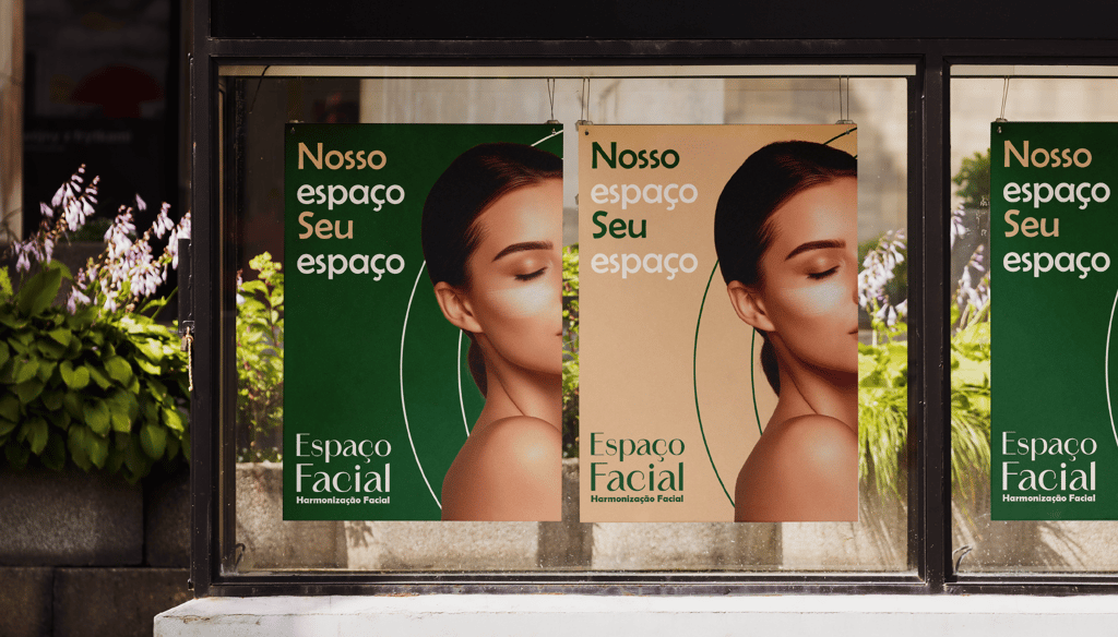 The color palette was carefully selected to reflect Espaço Facial’s core values. The Nature Green represents the brand’s connection to procedures with natural foundations, reinforcing authenticity and trust. The Peace White symbolizes peace and purity, conveying a sense of renewal and well-being. Lastly, when combined with the other colors, the Relaxed Beige evokes a feeling of tranquility and warmth, enhancing the client’s experience.