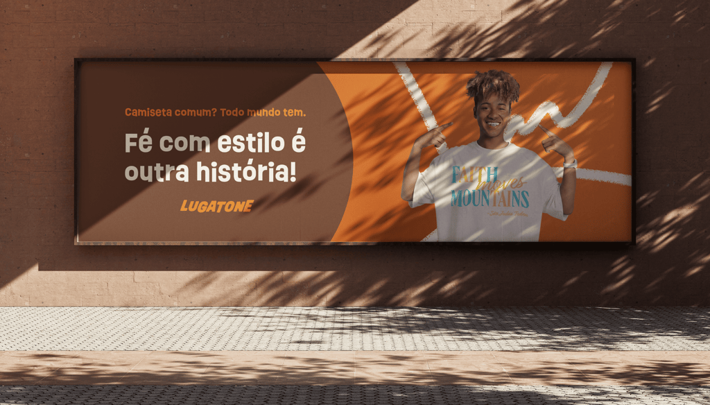 Assim, a tipografia da Lugatone não é apenas um suporte visual, mas um elemento narrativo. Ela sustenta o passado, dialoga com o presente e aponta para uma fé que continua se renovando.