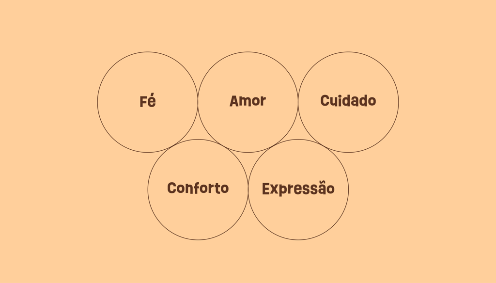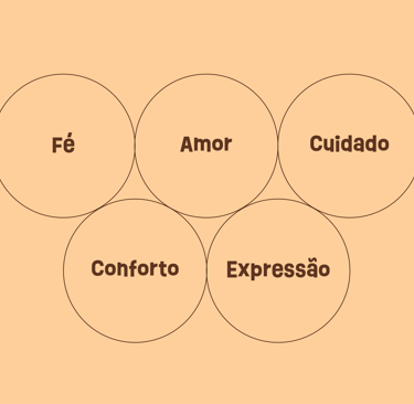 O branco aparece como espaço de respiro, simbolizando paz, luz e a ação do Espírito Santo. Ele reforça a pureza da mensagem e cria equilíbrio visual. Já o bege complementa a paleta com suavidade, trazendo uma sensação de calma, acolhimento e cuidado, aproximando a marca das pessoas de forma humana e sensível.