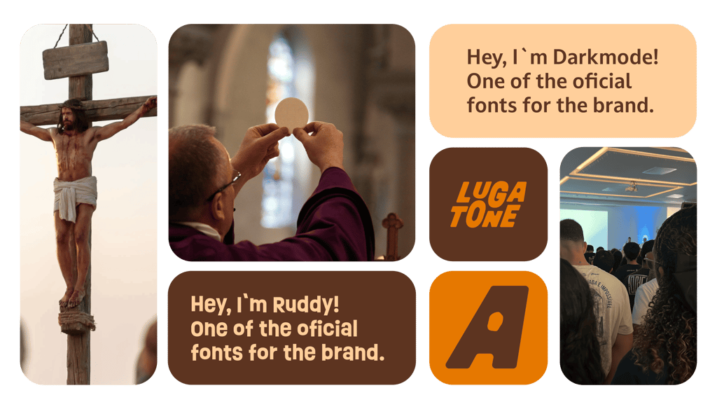 Together, these colors build an identity that unites tradition and renewal, sacrifice and hope, strength and affection, reflecting Lugatone’s mission to express faith in a way that is alive, accessible, and deeply meaningful.