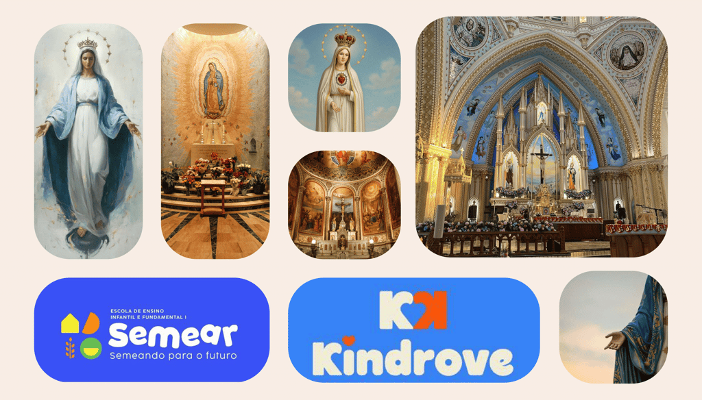Como elemento distintivo, a letra “O” do logotipo foi estilizada com a imagem de Nossa Senhora Aparecida em espaço negativo. Esse recurso gráfico transforma a tipografia em símbolo, adicionando significado espiritual e singularidade à marca, ao mesmo tempo em que reforça sua identidade religiosa de forma sutil, respeitosa e memorável.